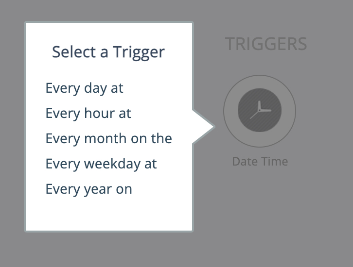 More commonly, one or more other polling triggers are used in conjunction with a Date Time trigger, as a way to control the scheduling of the polling trigger(s).