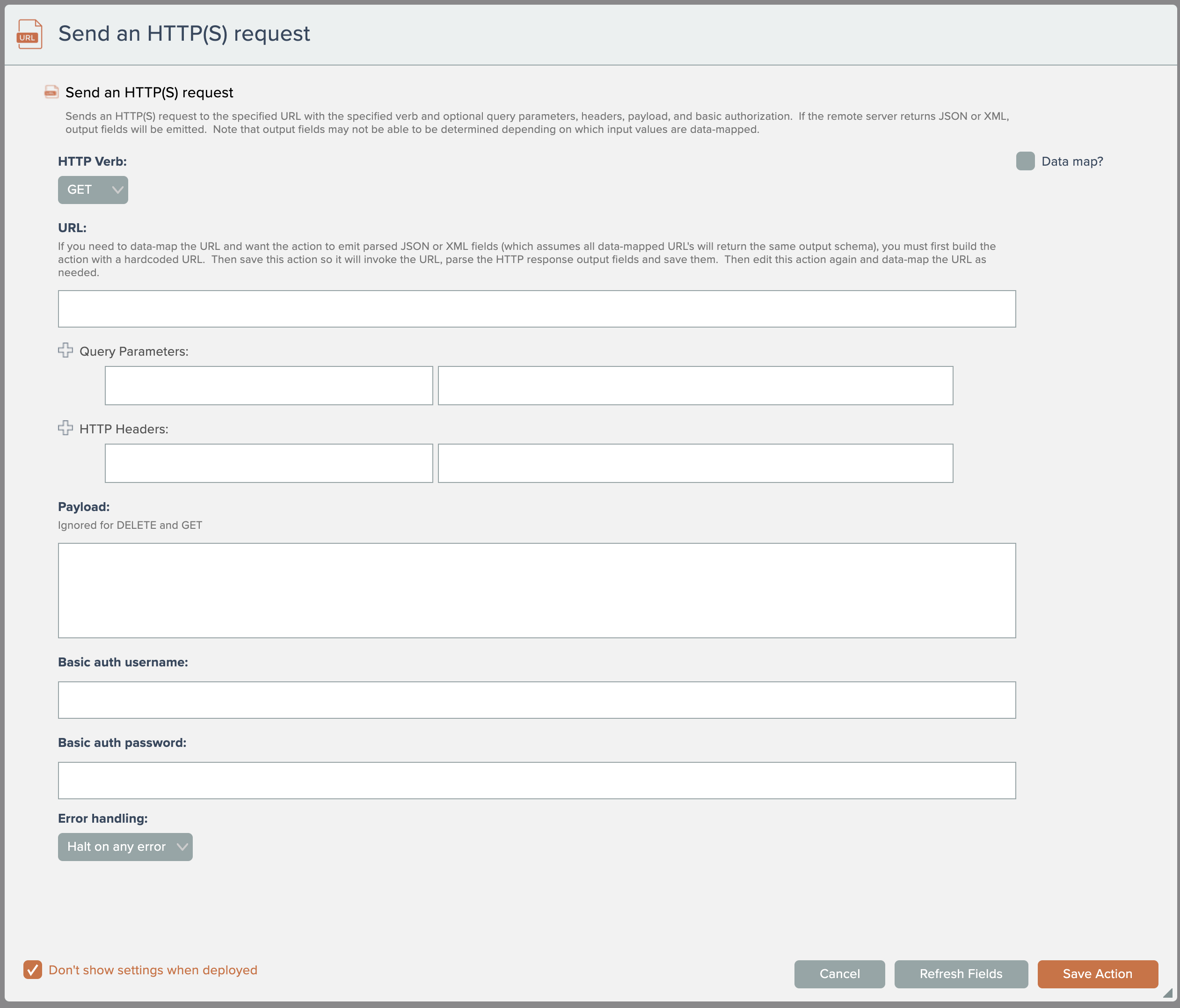 The HTTP action is general-purpose, supporting all the common HTTP verbs. It can be used to make basic REST-style API calls.
