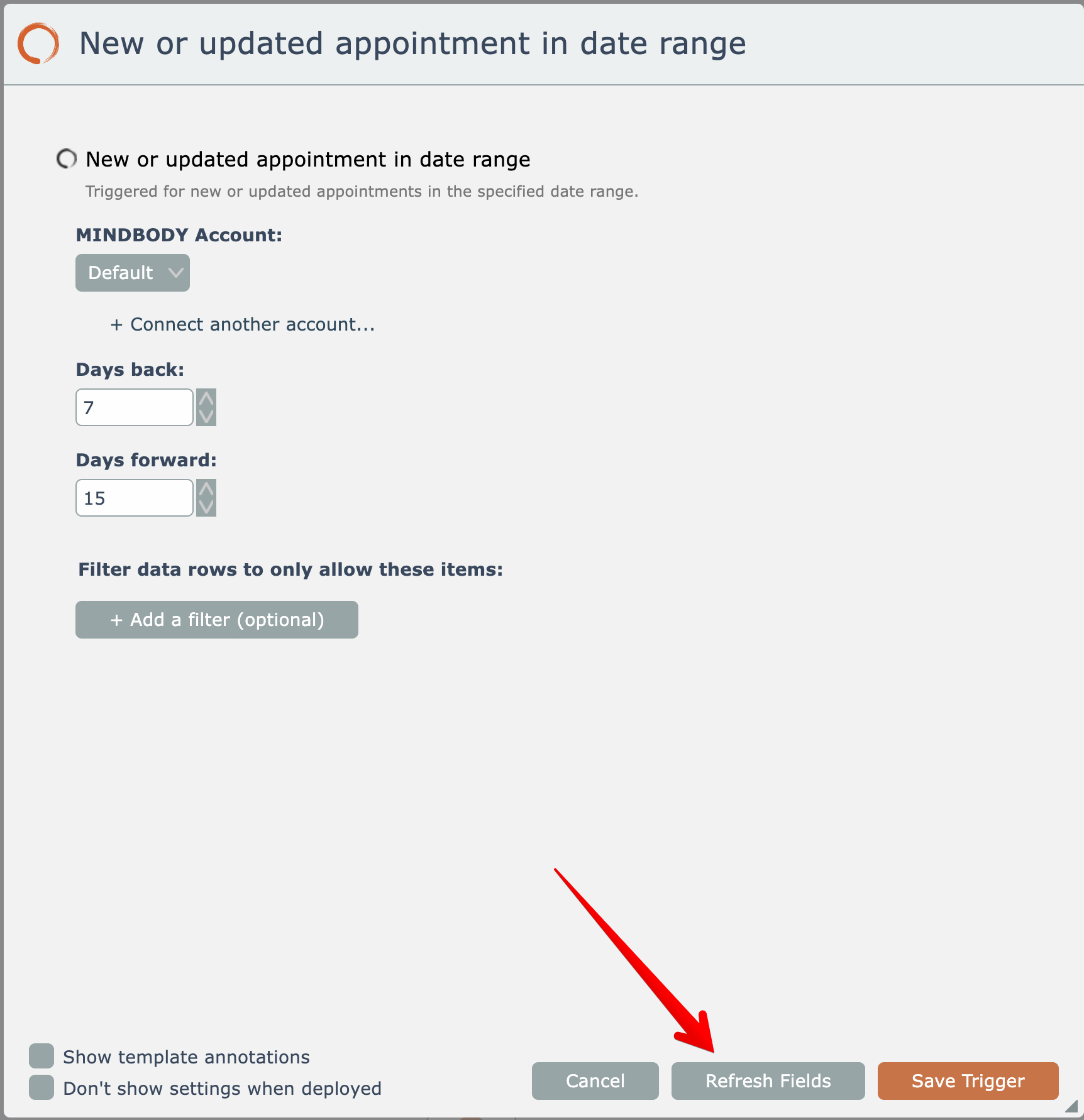 Triggers with dynamic fields will display a "Refresh Fields" button: