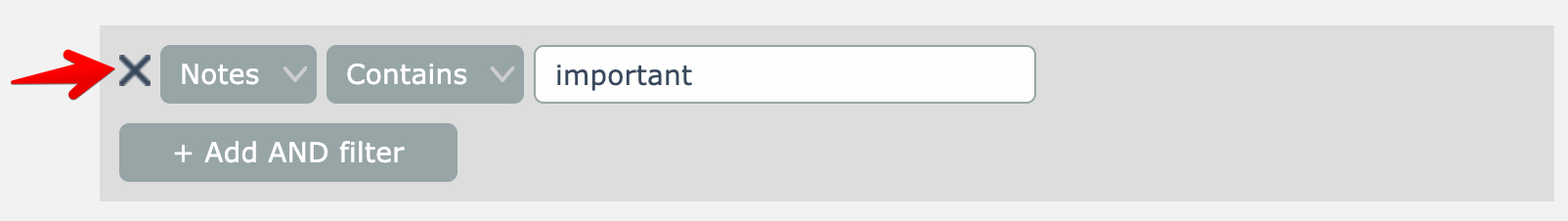 To remove a filter rule, click its X icon here: