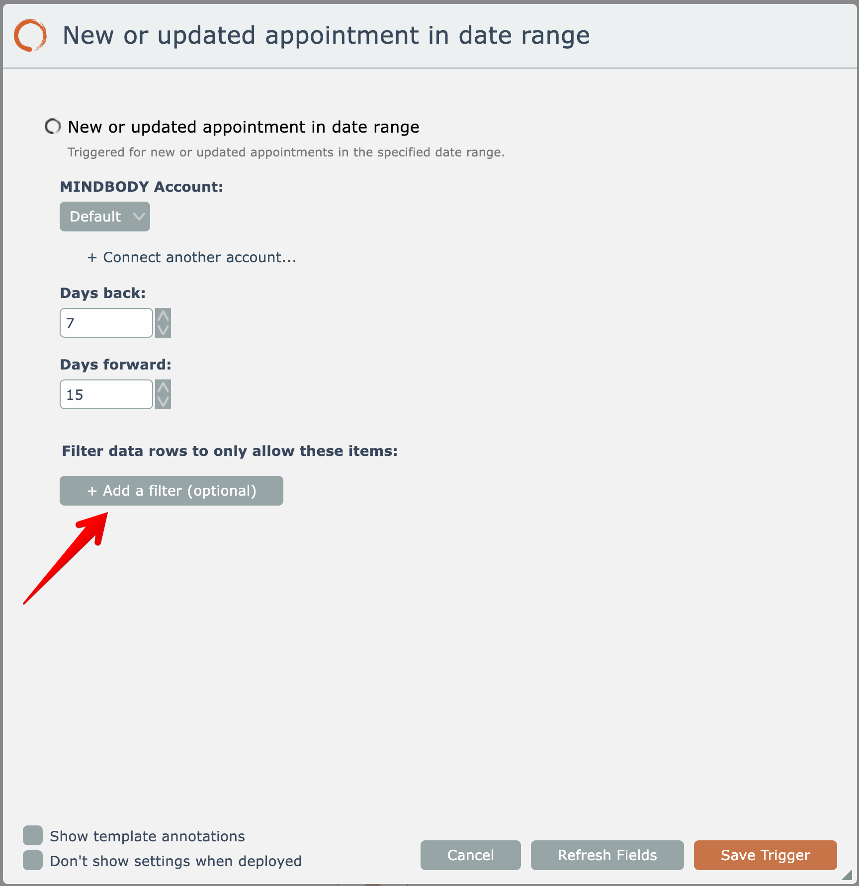 To define a trigger filter, click this button: