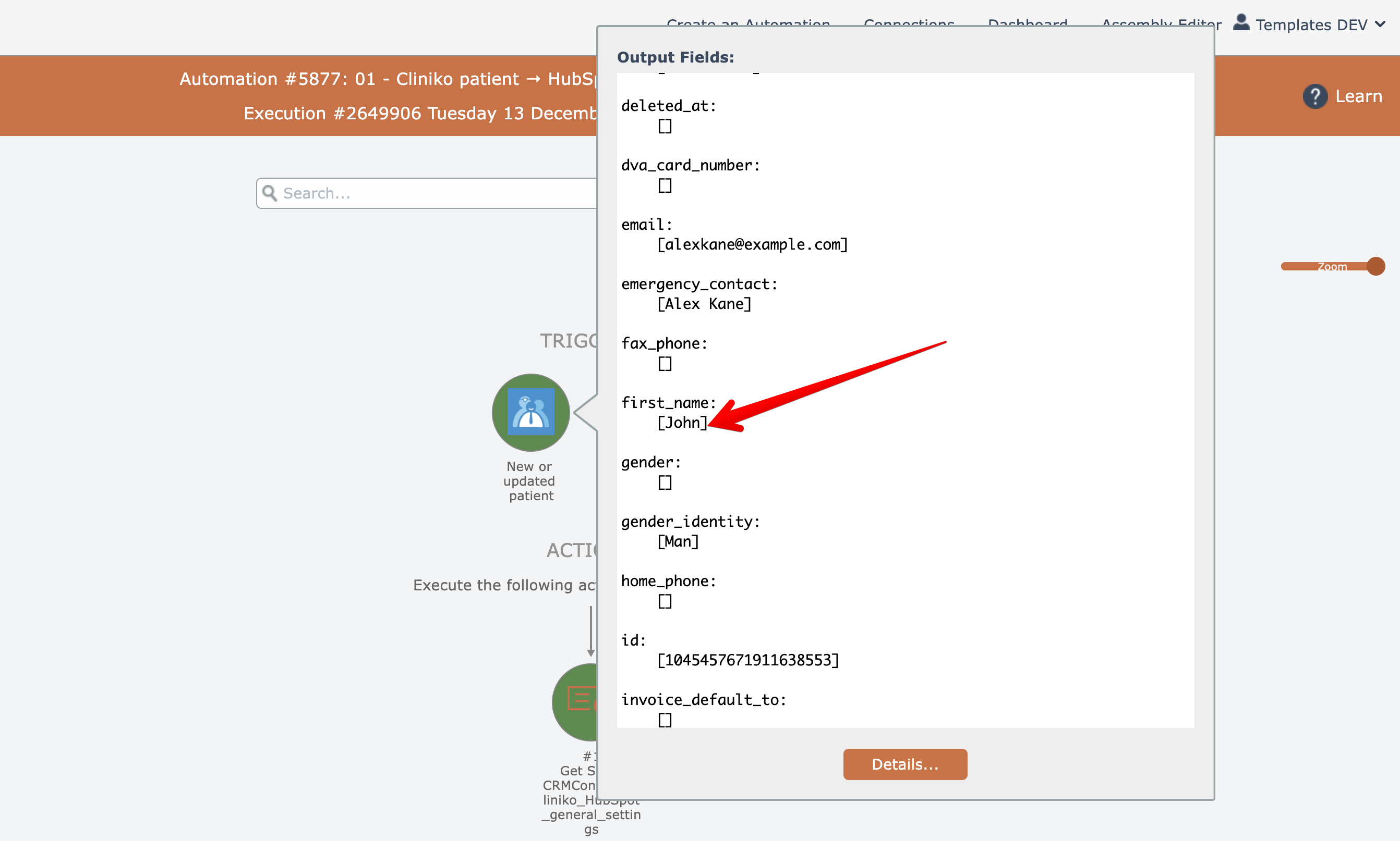 You can drill down into the automation's graphical history and examine it to find the matching data. In this example we searched for "John" and here it is: