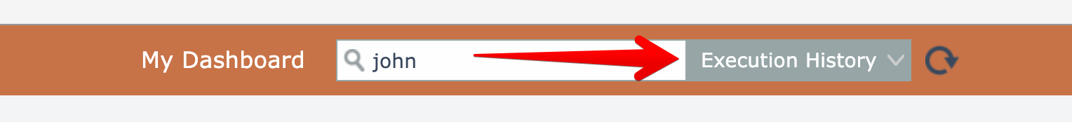 To search all execution history for all list automations, select "Execution History" from the search list and enter a query: