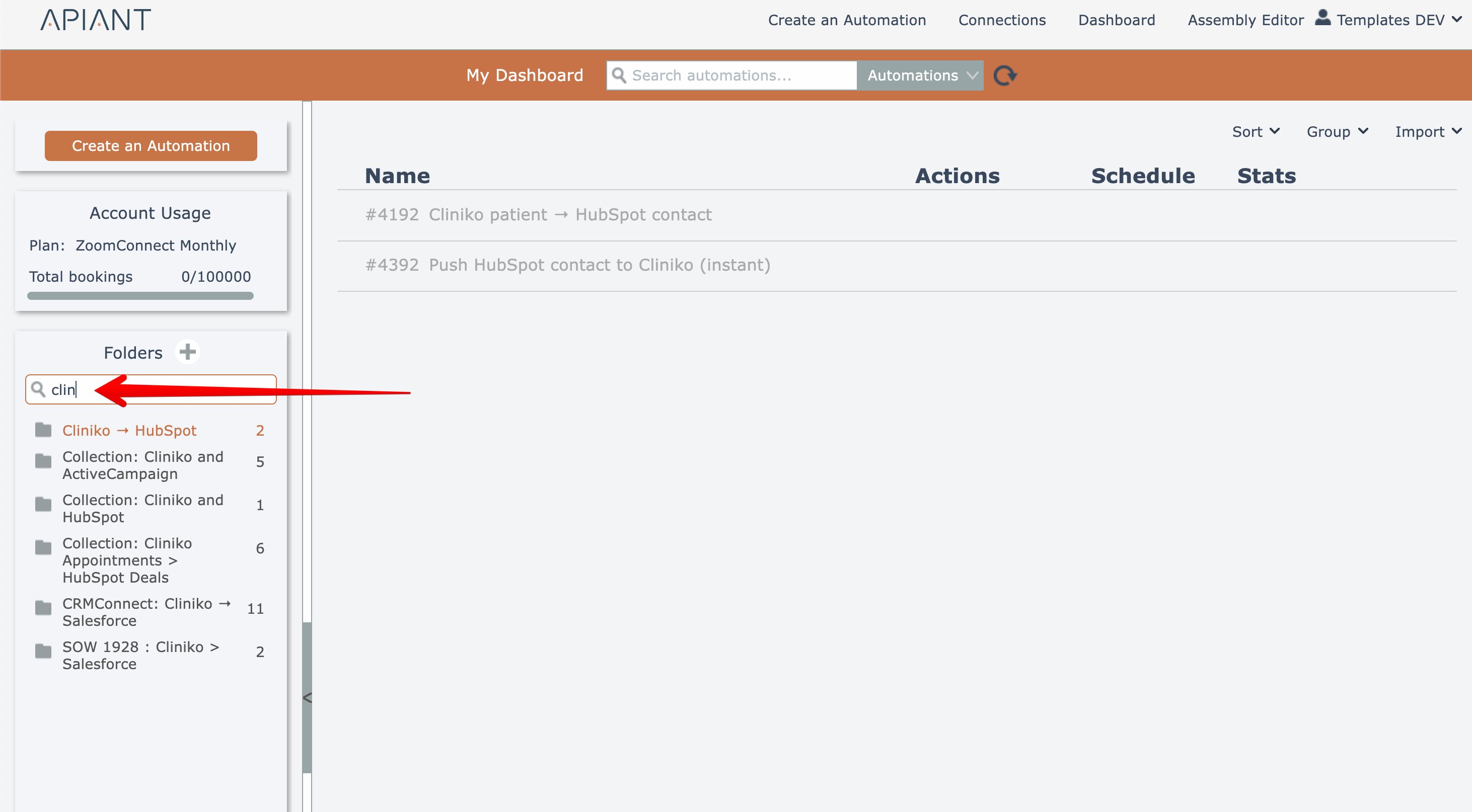 To search for a particular folder, enter text into the search field above the folder list.