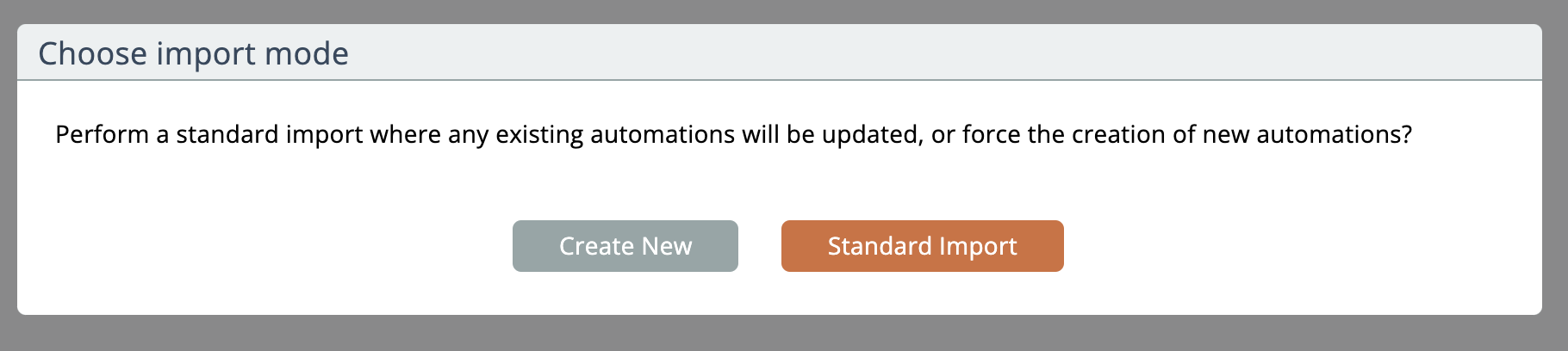 The Standard Import will retain the automation's unique identifiers when possible. If the same automation already exists in your account, it will be updated if the export contains a newer version.