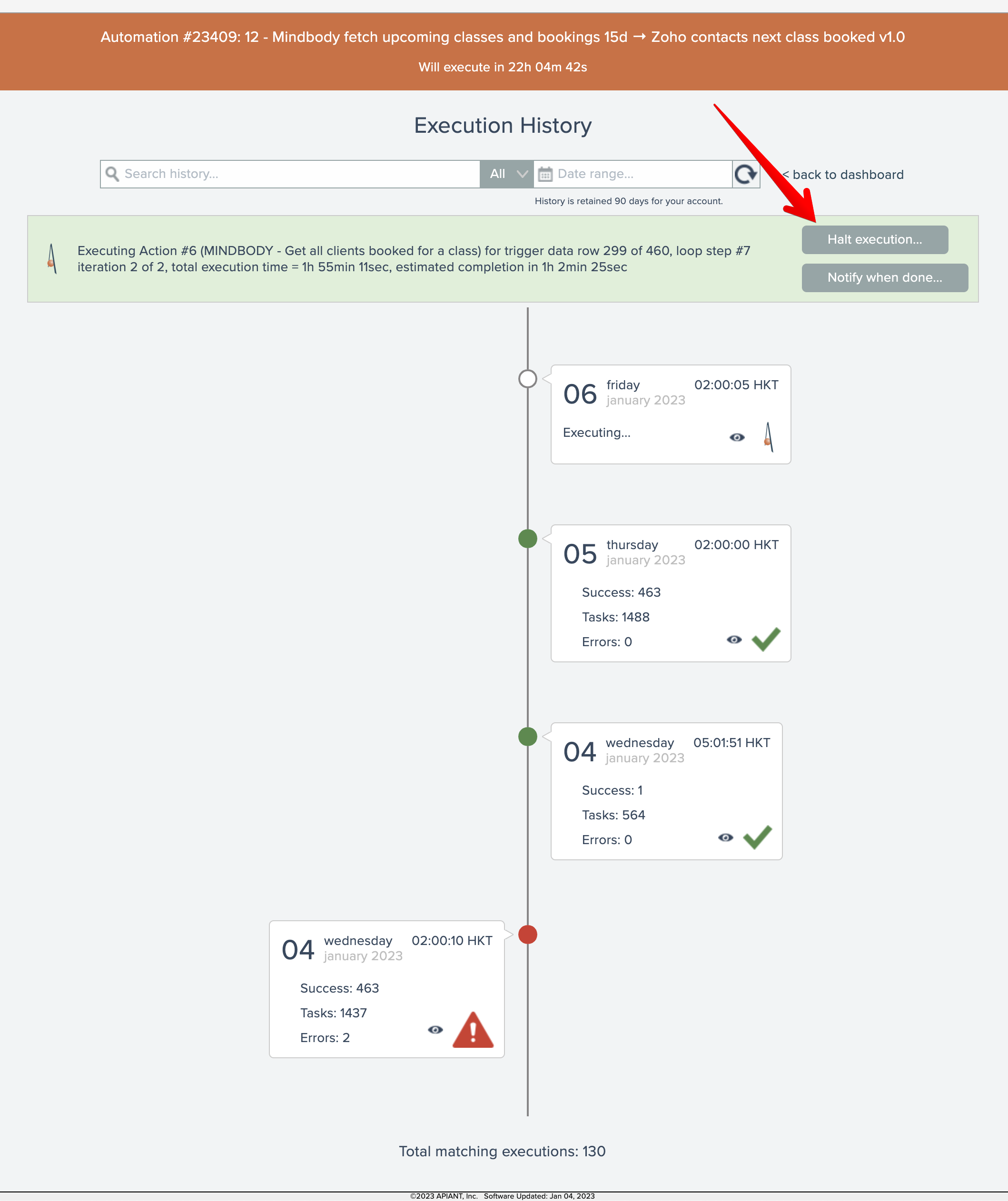 To halt the automation's execution, click the Halt button: