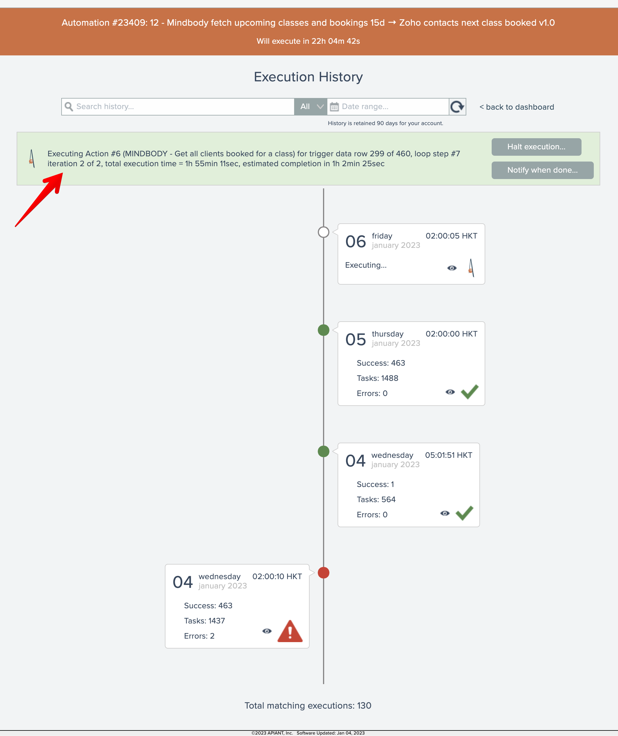 Learn how to check the execution status of an automation and halt it if needed. Discover how to use the automation's history screen to monitor progress and stop the process with a simple click. Make sure your automation is running smoothly with these help