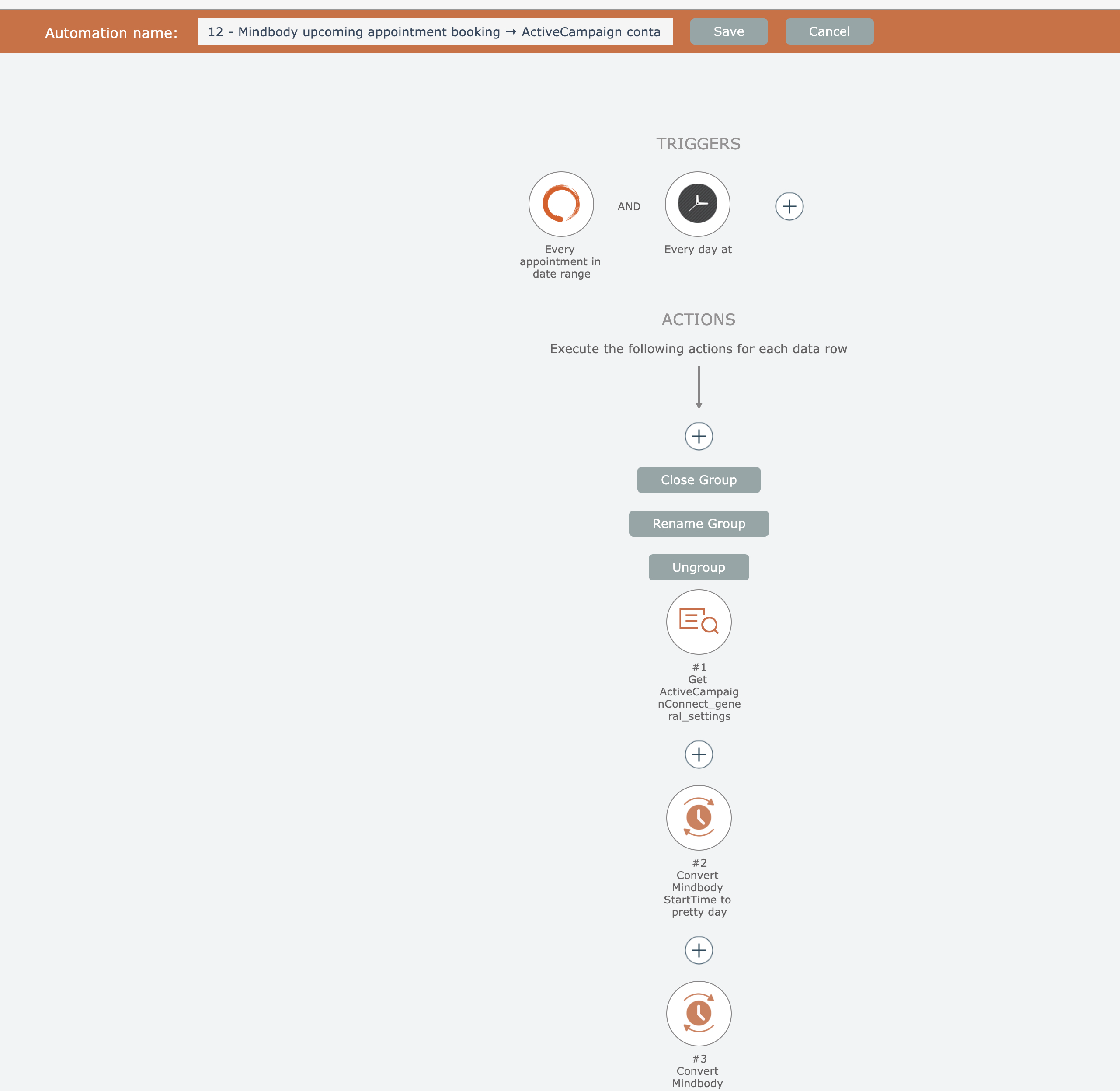 The copied automation will then appear in the automation editor, where any needed changes can be made to the copy before saving: