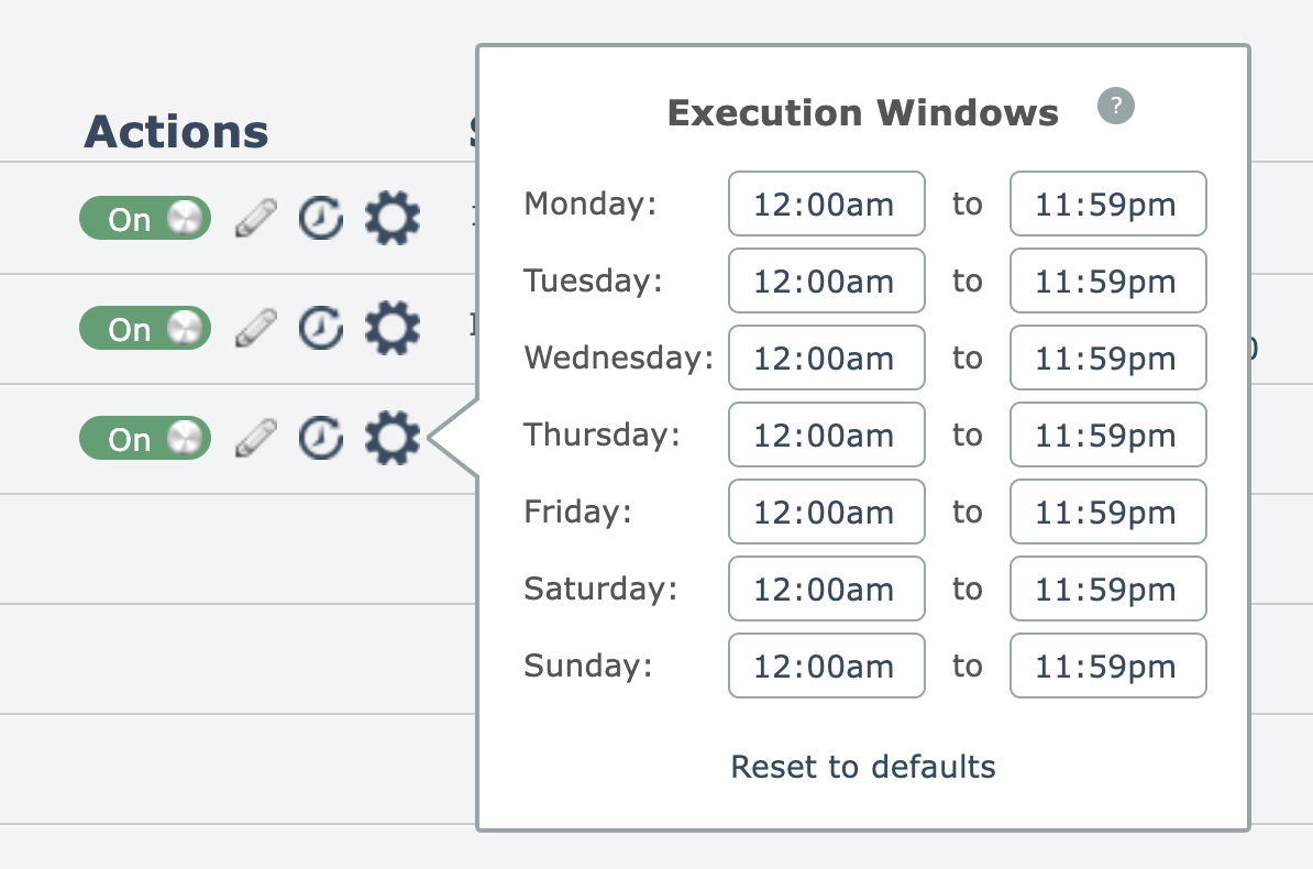 Execution windows allow windows of time to be defined for each day when an automation is permitted to be executed.