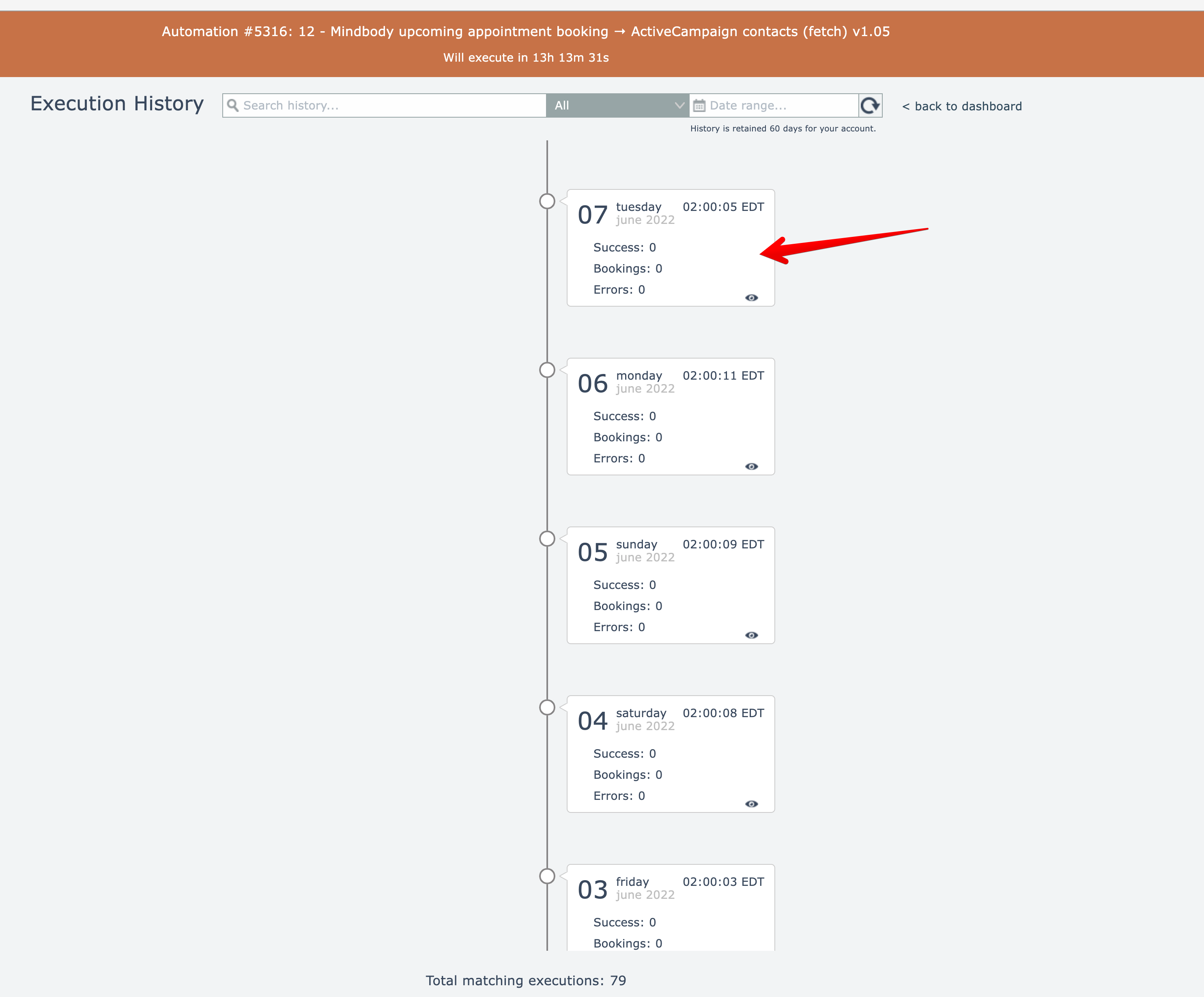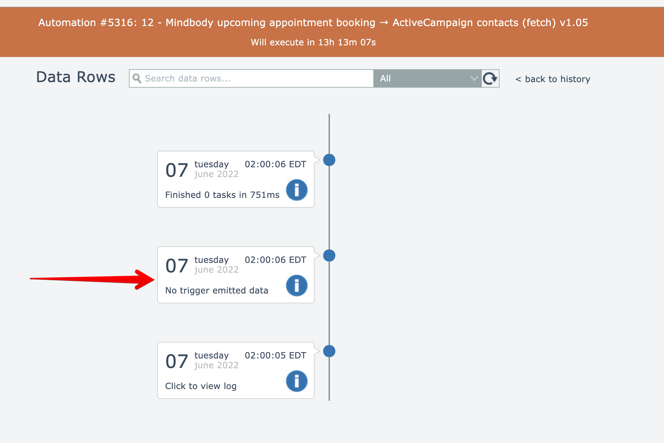 By default, automations keep debug logs for each executed trigger and action. Debug logs are accessible via the graphical history view:
