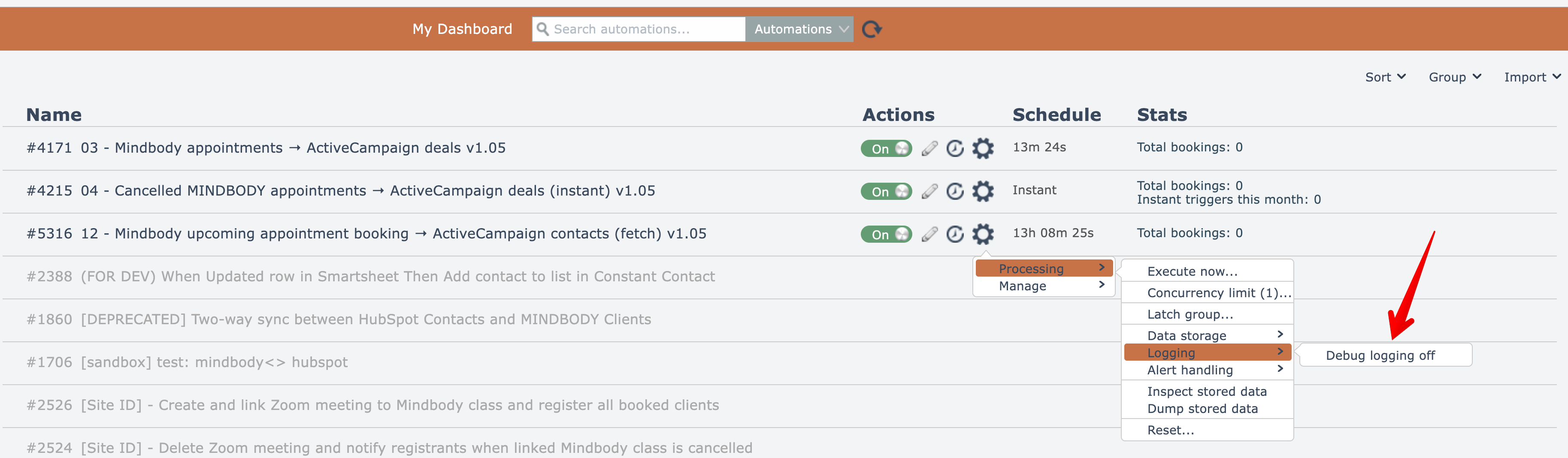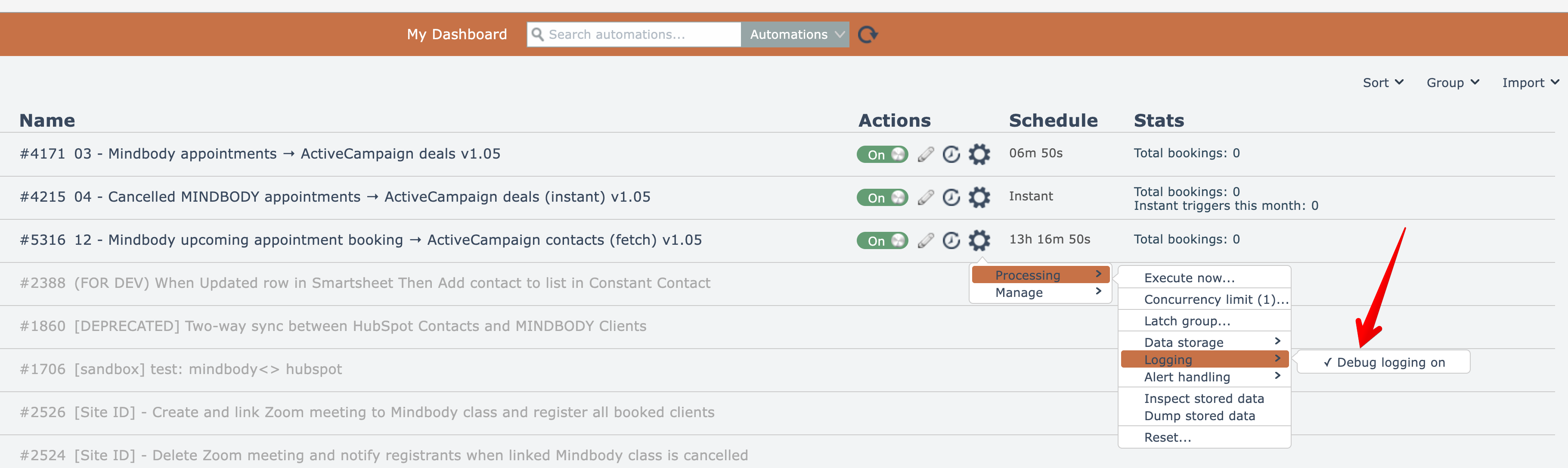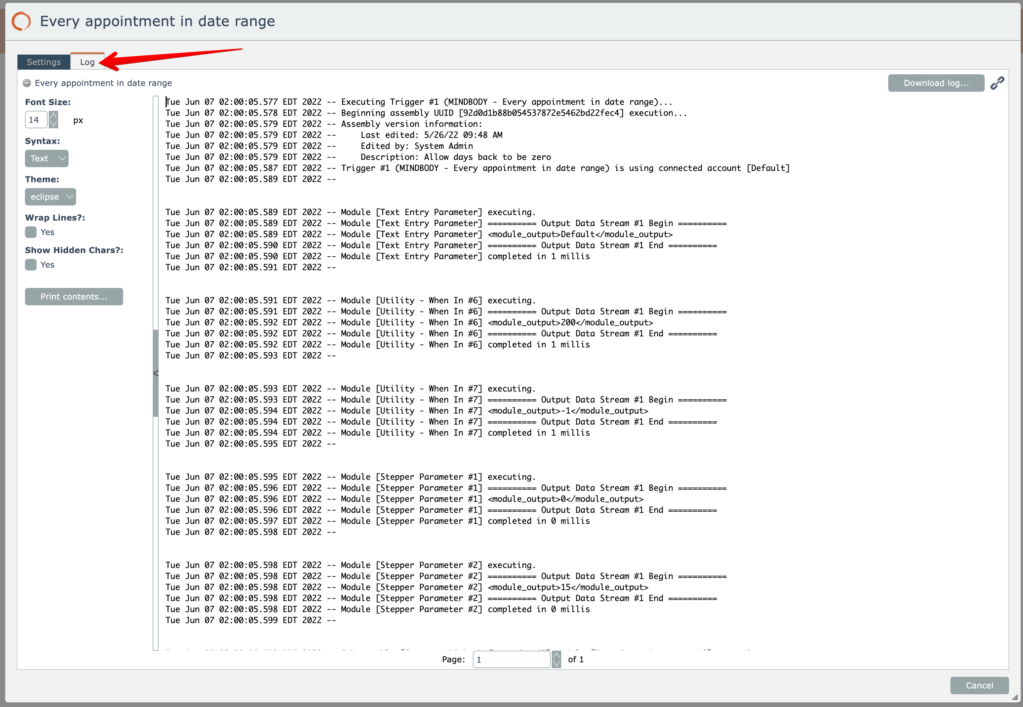Automation logs contain information generated by each module within a trigger/action assembly. Generally the information within is useful for trigger/action implementors for troubleshooting.