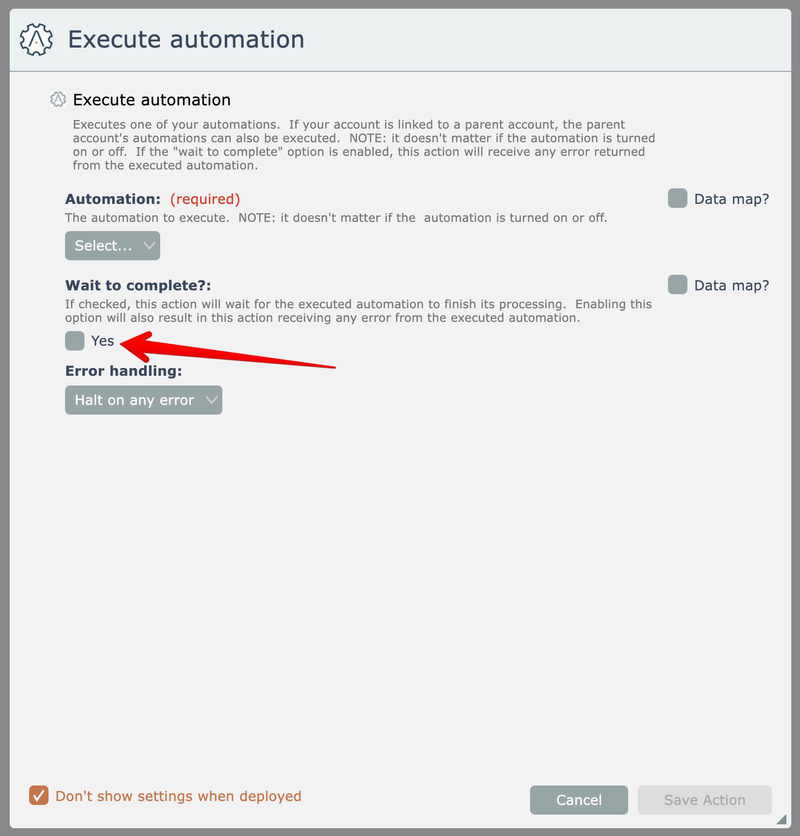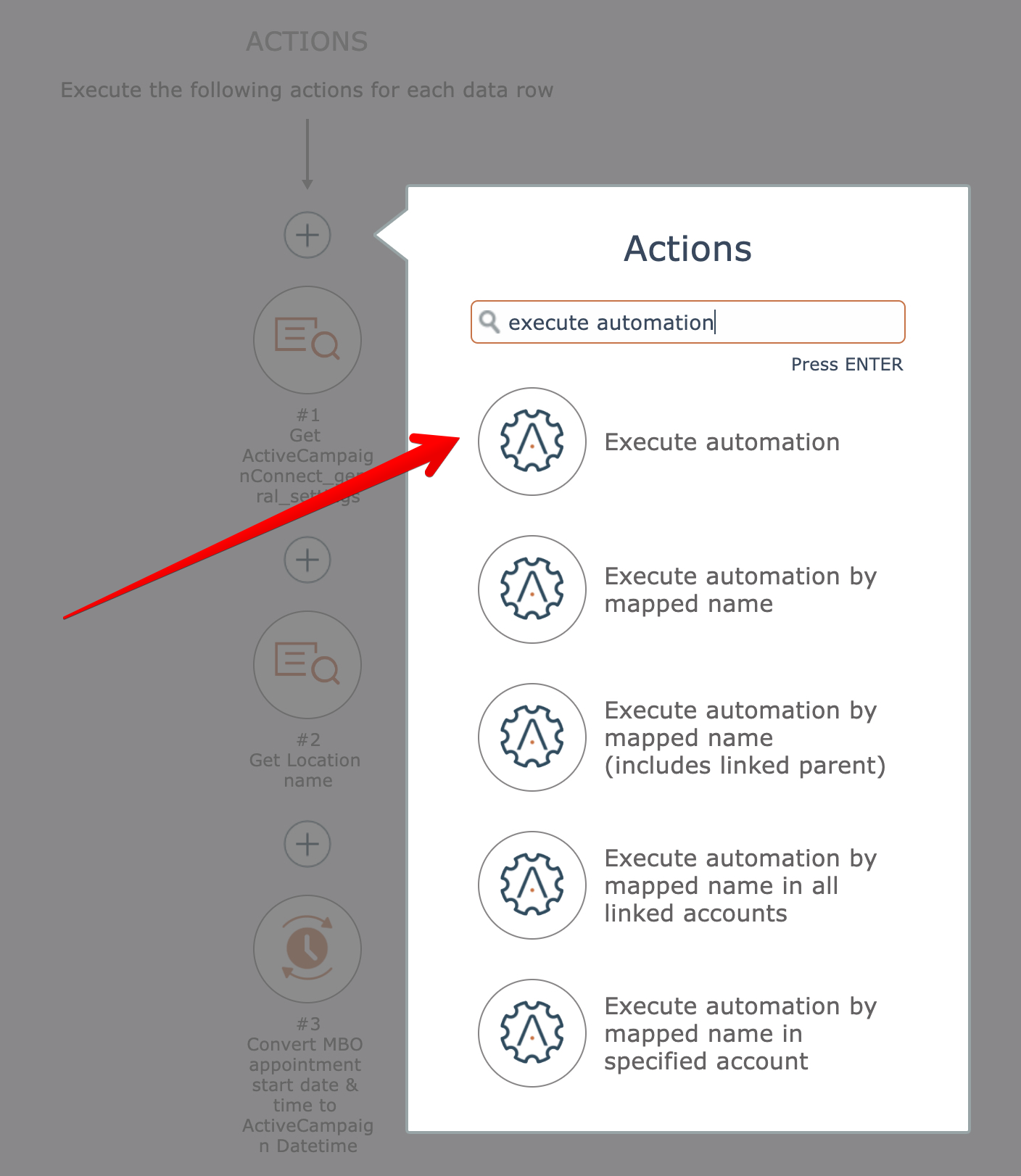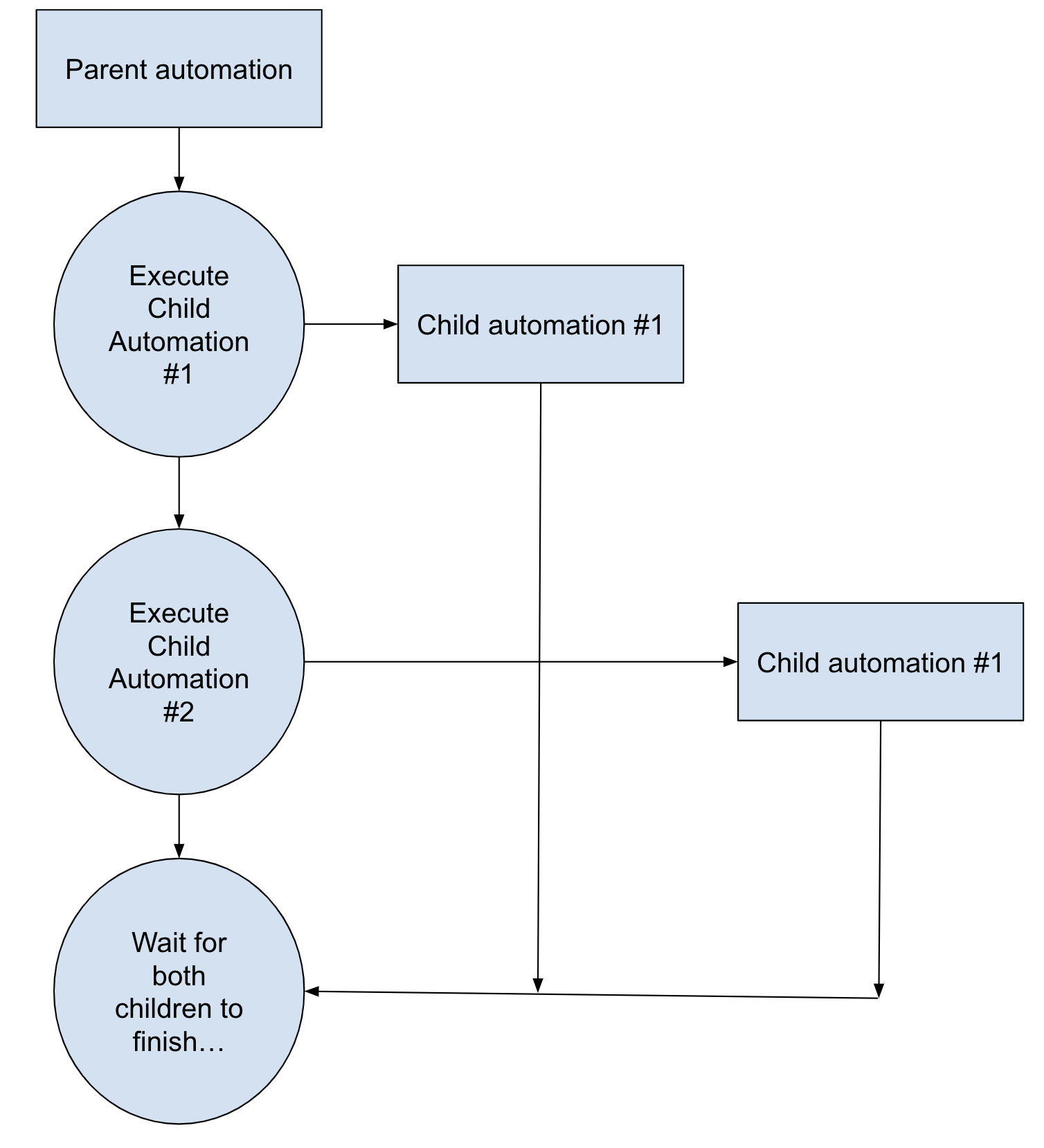 Then the parent automation can be edited to add the "execute automation" action found in the System app to execute the child automations: