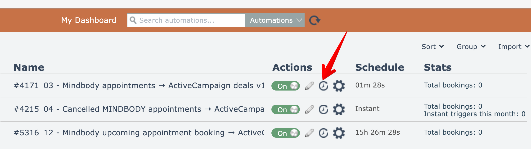 Learn how to easily access the detailed processing history of any automation by clicking on its history icon, conveniently depicted as an image. Stay informed about the steps and actions taken by the automation and ensure smooth performance.