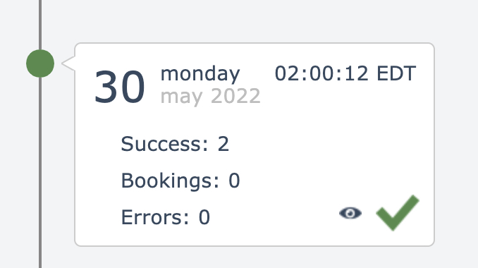 If the account has a subscription plan, a count of the plan's billing units is also displayed. The default billing unit is "task", which is a count of how many non-system actions were executed. In this example, the billing unit is "Booking":