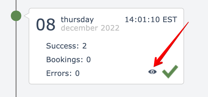 Each entry records the number of successfully processed, filtered, and errored data rows.