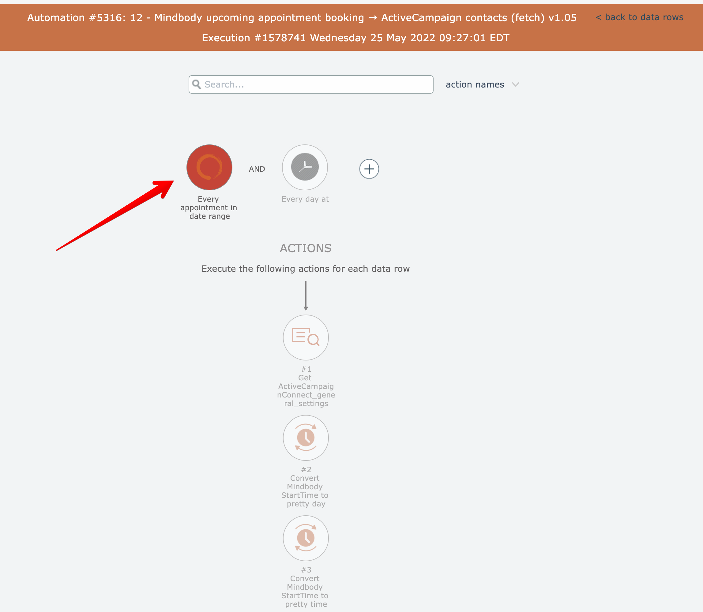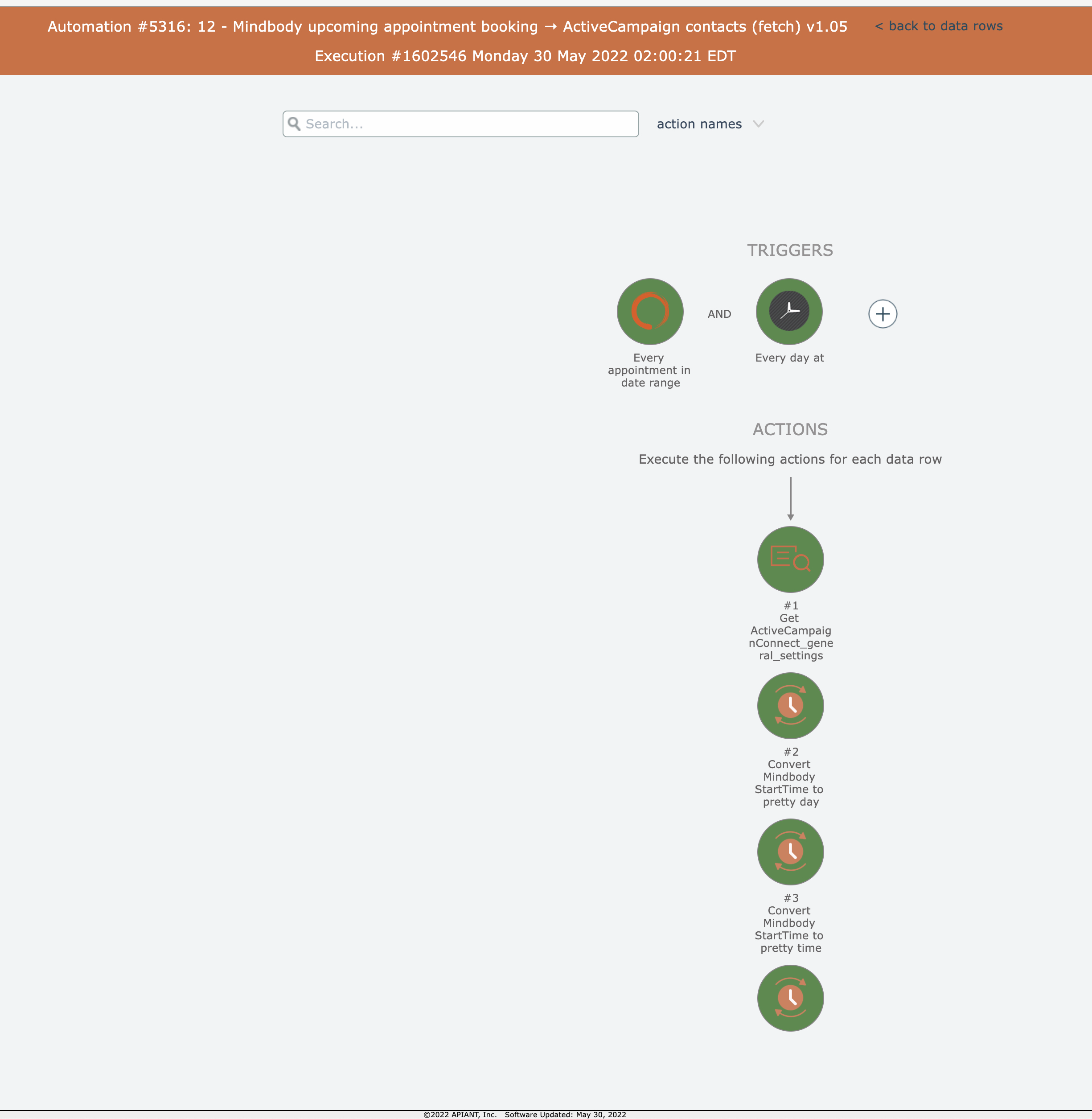 Improve your workflow with our graphical history view feature. Easily search for specific actions based on output data, name, settings, or field mapping content. Locate actions quickly by step number. Our intuitive editor highlights matching actions in ye