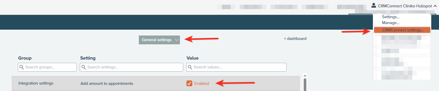 The Cliniko to HubSpot integration allows for financial data to be automatically included in appointment records. The "Add amount to Appointments" setting enables the system to calculate and assign a monetary value to each appointment, which is then mapped to the "Amount" property in the associated HubSpot Deal.
