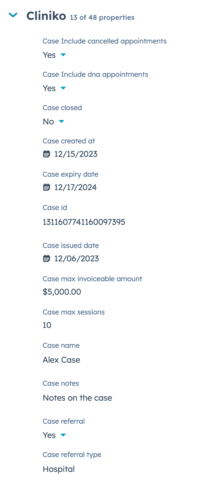 HubSpot deals in the Cliniko appointments pipeline now include case information from Cliniko