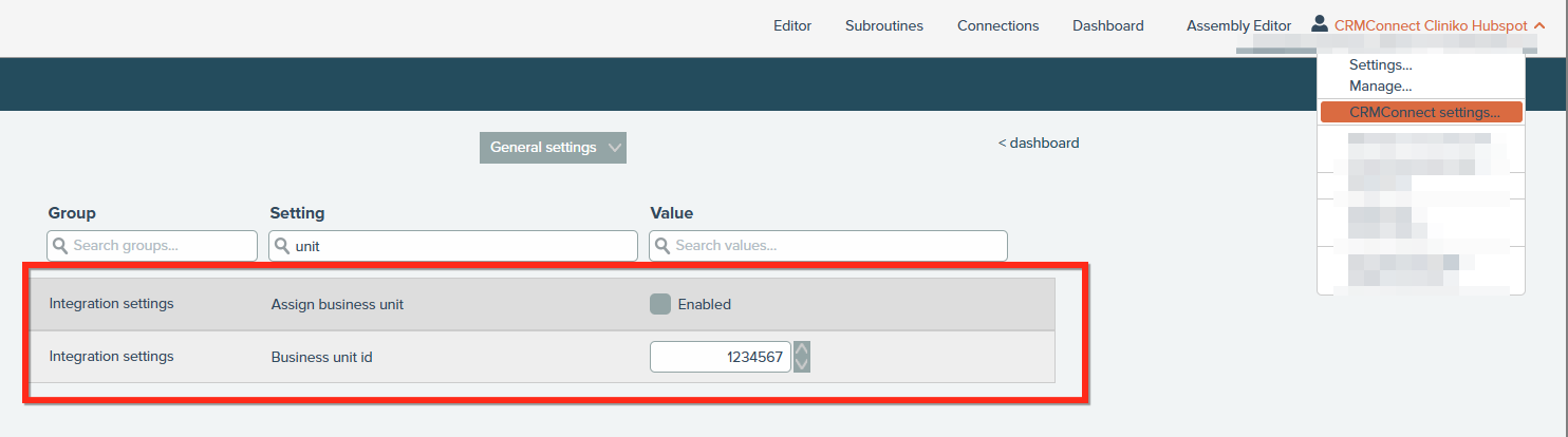 Two new integration settings enable Business Units support in CRMConnect: