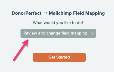- A new interface will appear, displaying the current field mappings between DonorPerfect and Mailchimp: