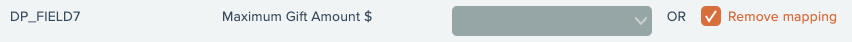 - Click Remove mapping to remove the Mailchimp merge field and stop syncing data for this field between DonorPerfect and Mailchimp: