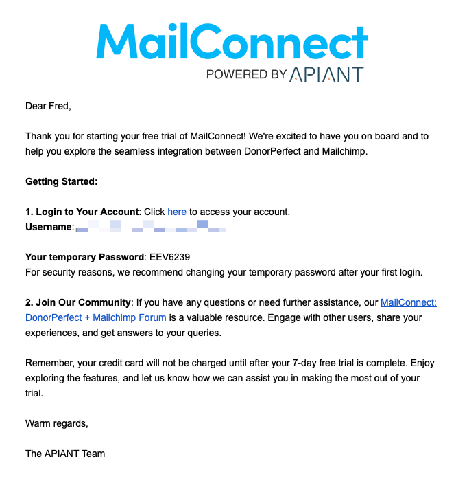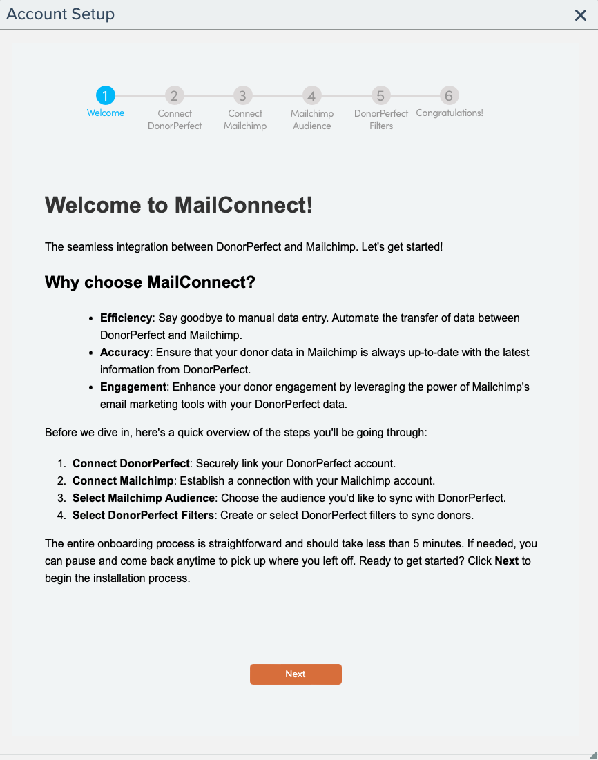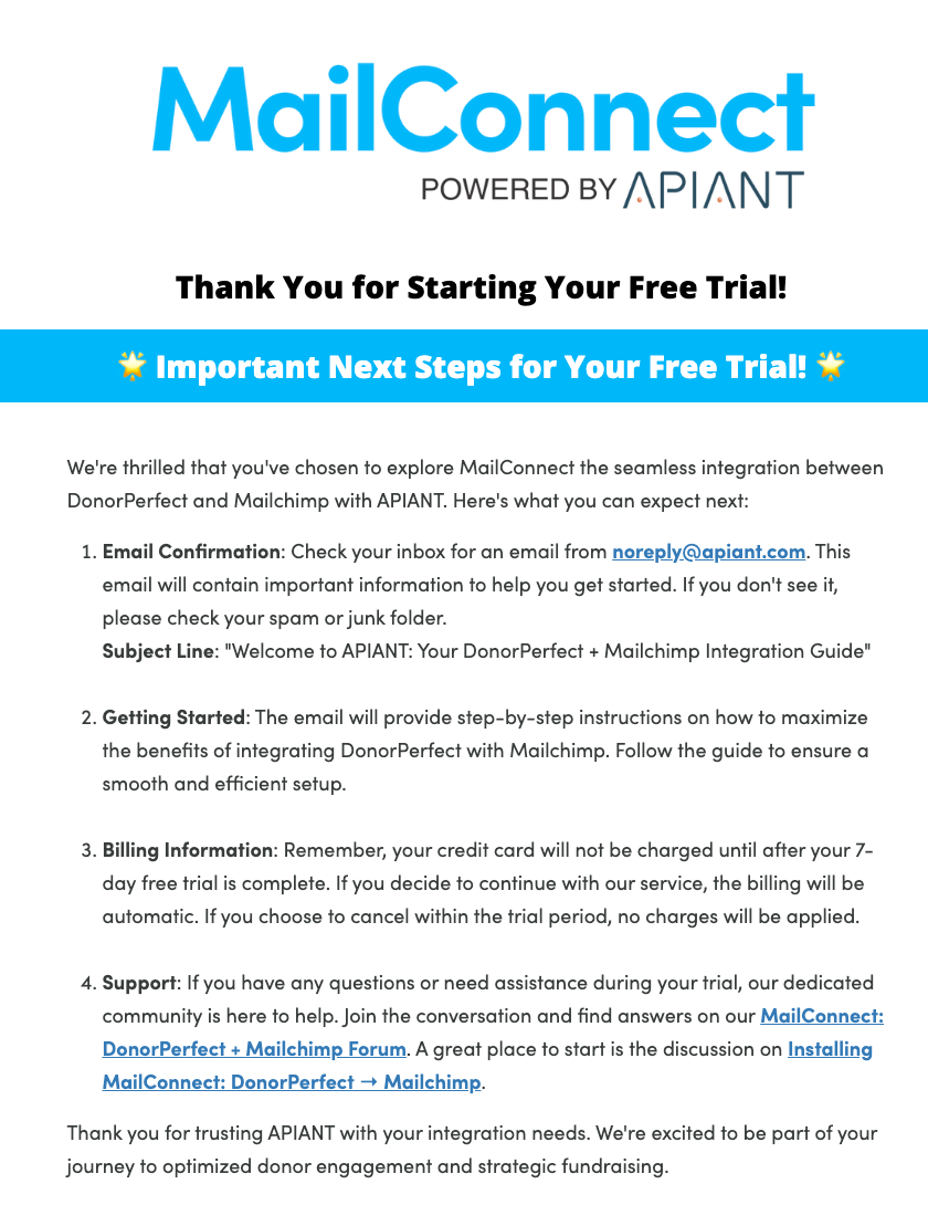 Follow these steps to install your MailConnect: DonorPerfect → Mailchimp free trial: