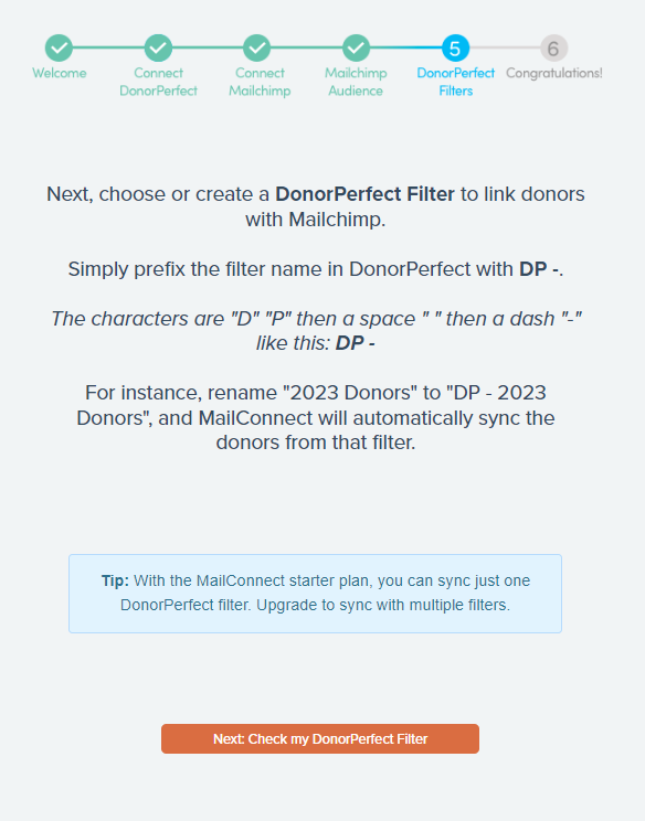 Account Setup: Step 5: Create or rename a DonorPerfect Filter with the prefix DP -