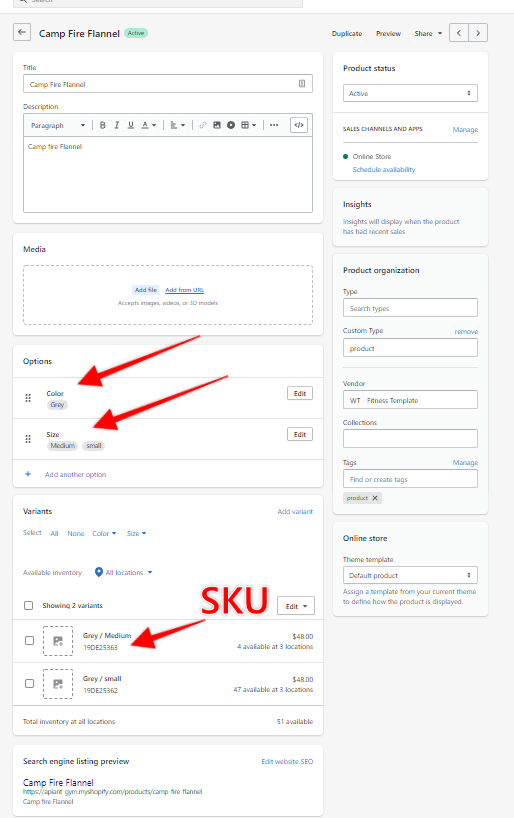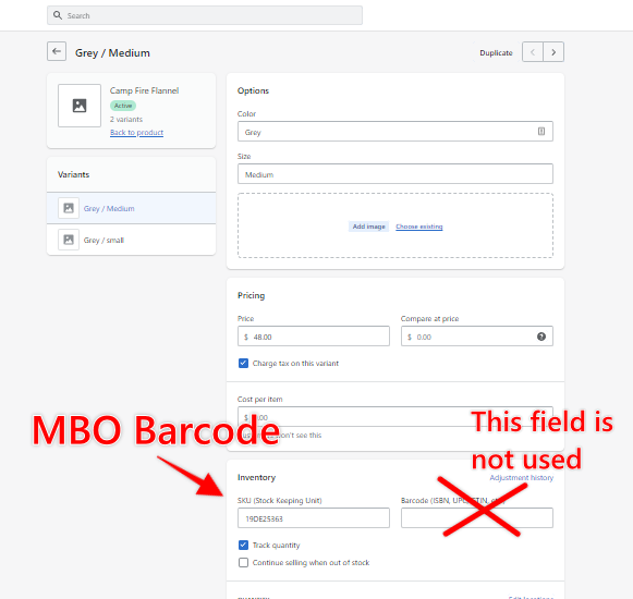 Keep in mind that a product in Mindbody that has a Color and or Size variant must also have the same options in Shopify with the same name. If your Variant options in Shopify do not Match Mindbody the sync will fail for that product.