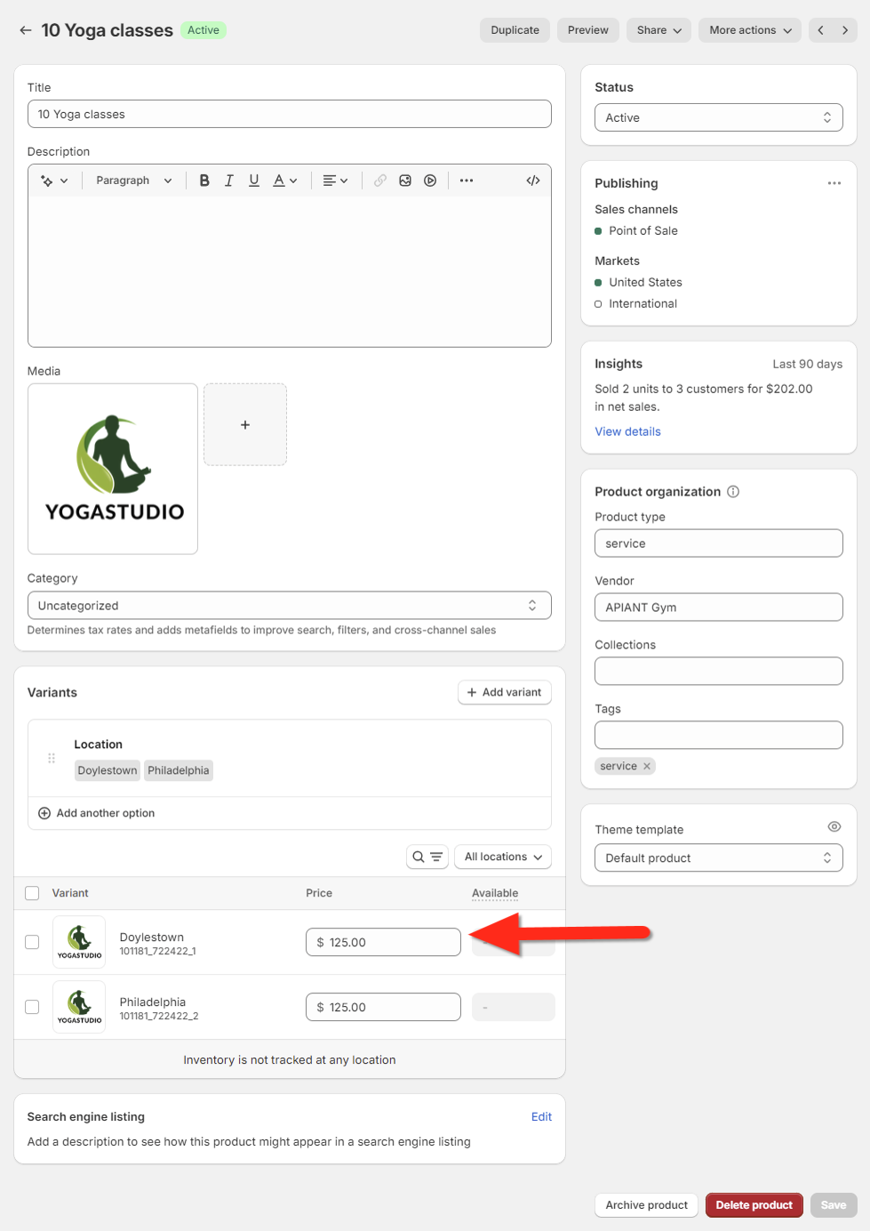 When you change the price of a product tagged as a service in Shopify, the corresponding pricing option in Mindbody will be updated automatically. This price update process occurs every 15 minutes.