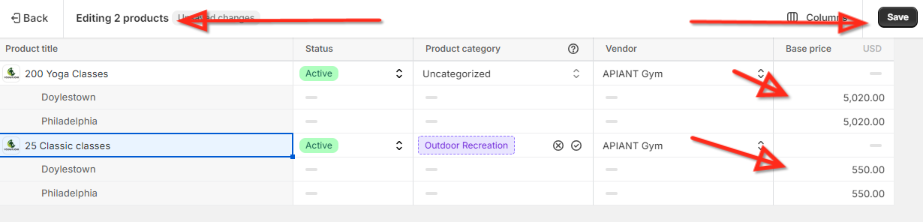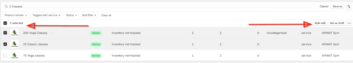 When editing multiple services in Shopify using the Bulk Editor, the corresponding services in Mindbody will also be updated accordingly.