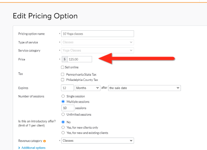 When the sync runs, it will update the individual pricing options in Mindbody based on the changes made in Shopify.