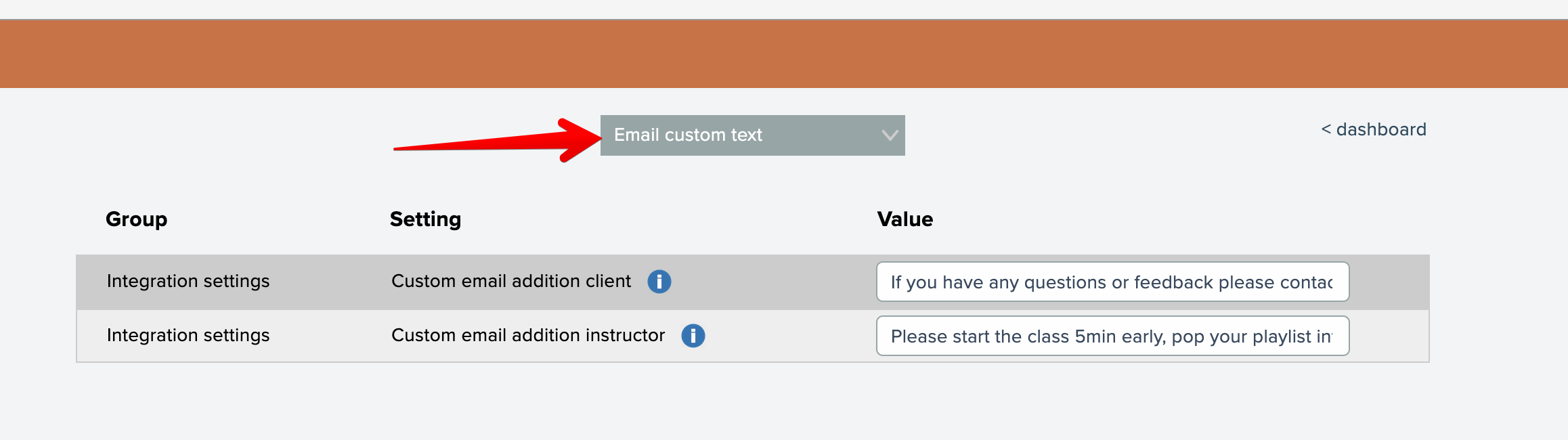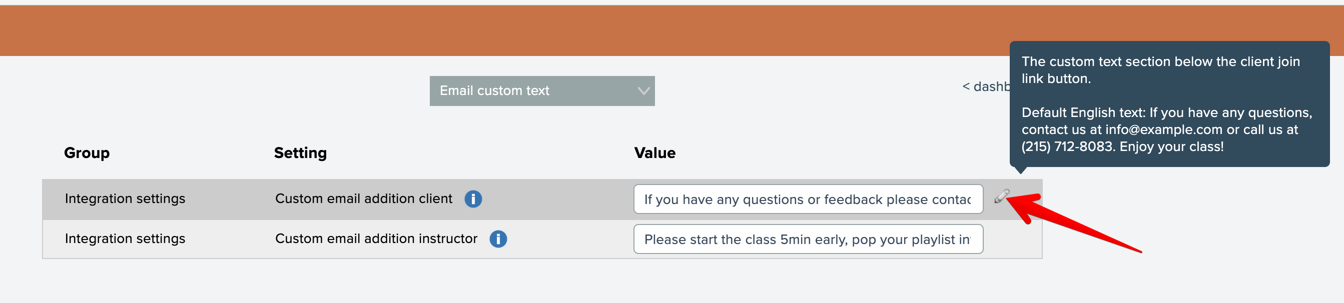 Customize emails sent to clients and instructors