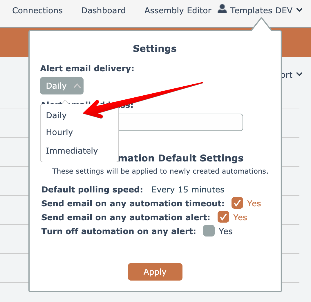 To change when you receive the error alert reports, access your APIANT account here