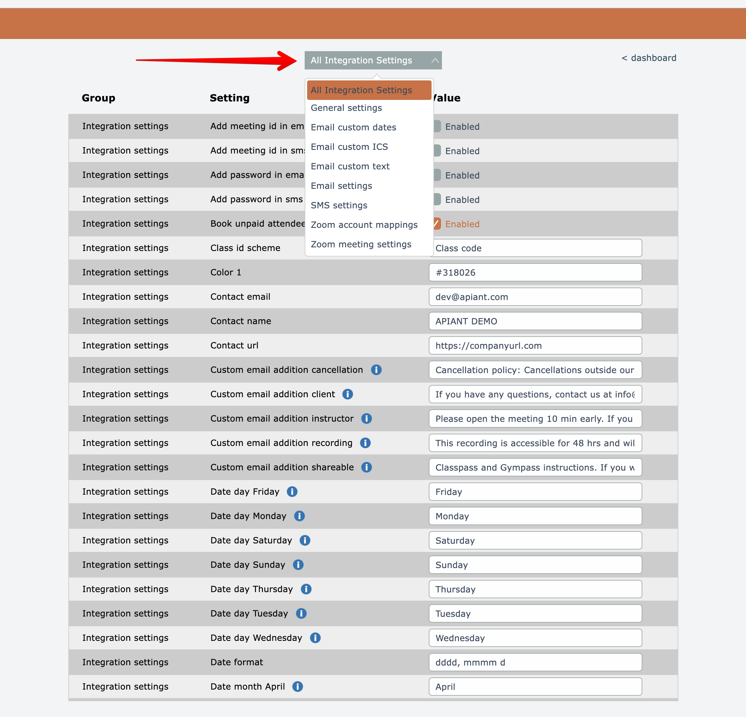 ZoomConnect's functionality is controlled via an extensive number of settings. These settings are initially configured when you signed up for a new account and were onboarded.
