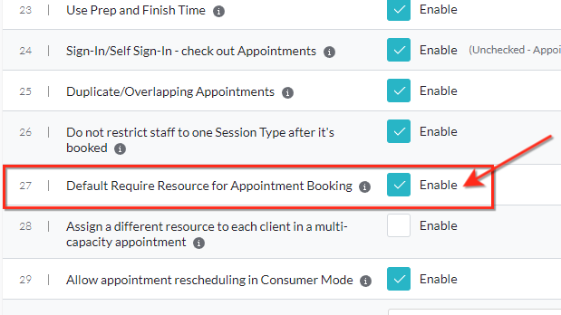 Appointment options "Default Require resource for Appointment Booking" must be enabled.